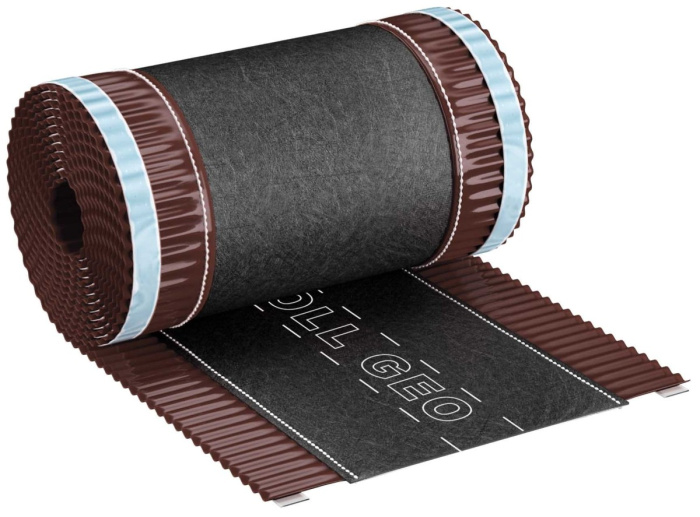 Hrebeňová páska Eurovent® ROLL GEO je jednovrstvová ventilačná páska určená na horizontálne a šikmé hrebene. Je vyrobená z profilovaného hliníkového plechu, polyesterovej geotextílie s termoplastovými vláknami a samolepiacej butylovej pásky. Spojenie hliníkového plechu a polypropylénovej tkaniny je dodatočne zosilnené špeciálnym zošitím pomocou nite.