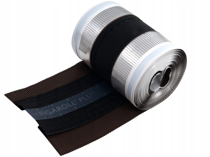 Figaroll® Plus je tesniaca a ventilačná páska s inovatívnym dvojkanálovým systémom vetrania, ktorá umožňuje perfektnú ventiláciu a zároveň chráni strechu pred dažďom a snehom. Páska má pevné, ale zároveň ľahko tvarovateľné hliníkové bočné okraje, ktoré zaručujú roztiahnuteľnosť až o 50%. Táto vlastnosť umožňuje optimálne pokrytie aj vysokoprofilových škridlí.