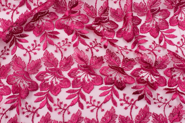 Čipka gipiura na tylovej podložke - intenzívna ružová